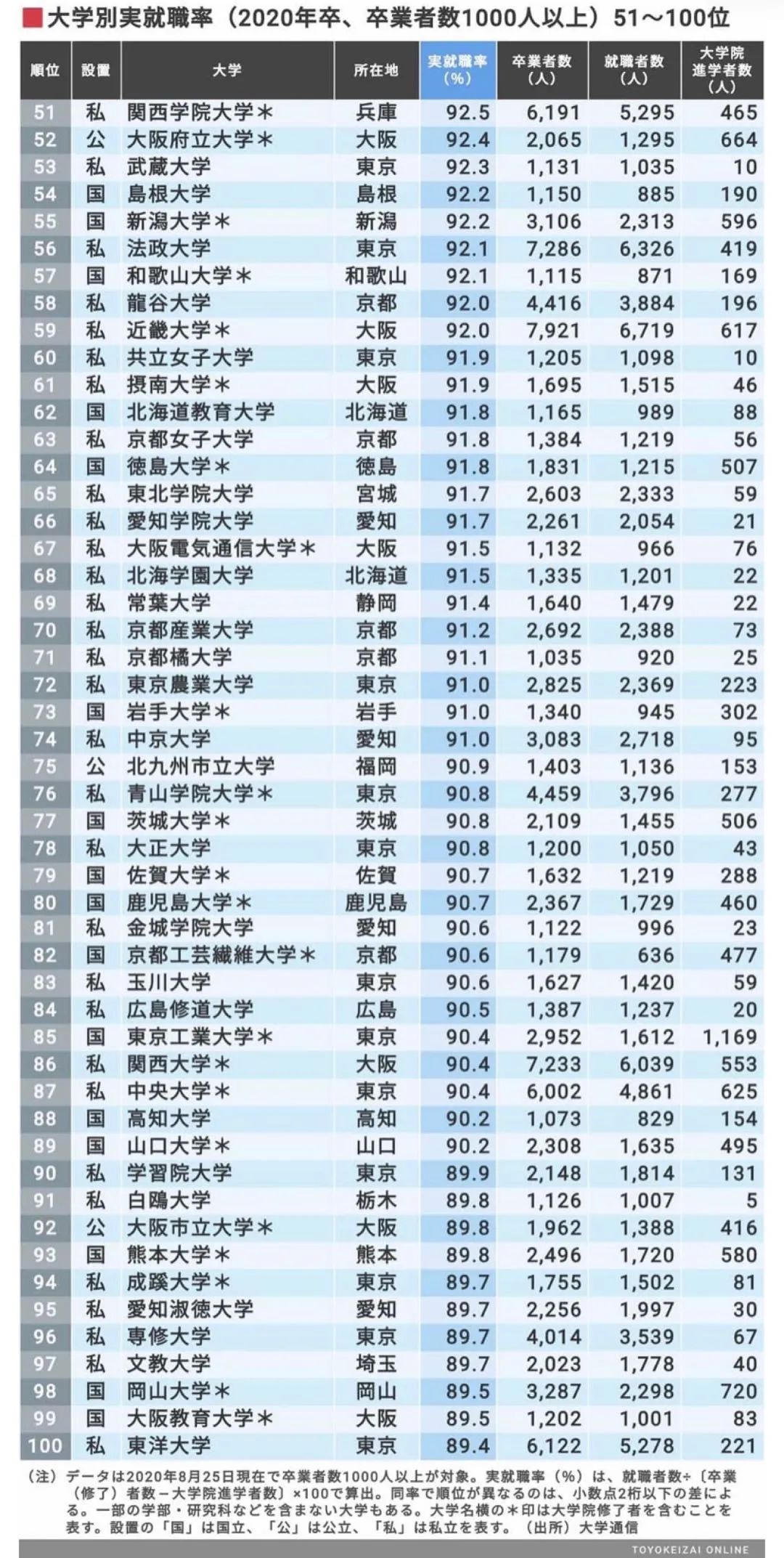 最新 2020年日本大学实际就职率排行榜 第一所高校蝉联四年第一
