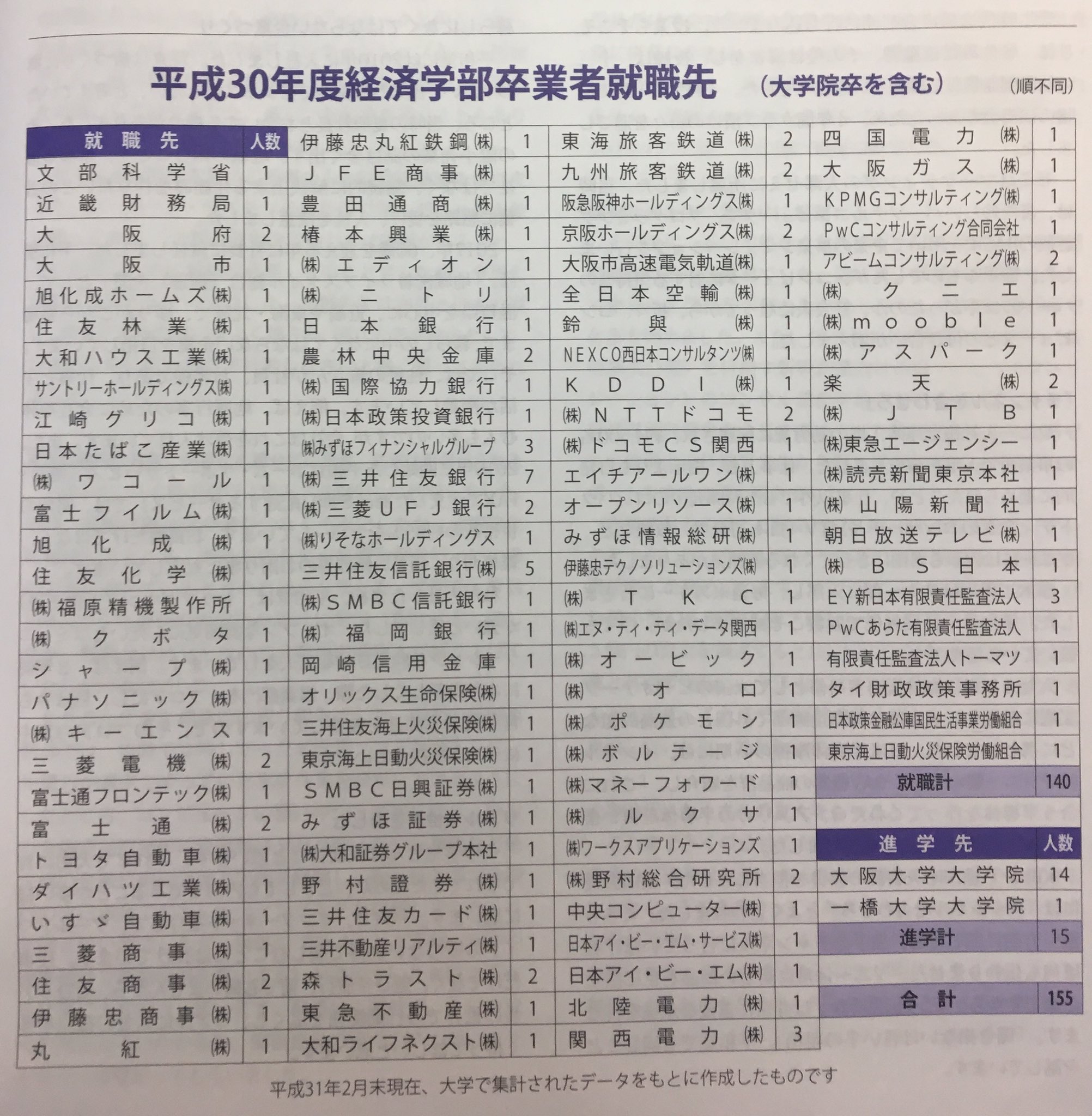 Kuro はんけい On Twitter 平成30年度 大阪大学 経済学部 就職 進学先 一覧を発見しました
