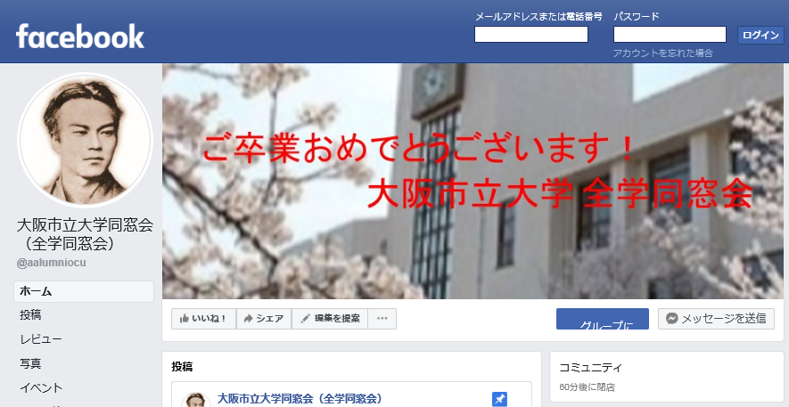 大阪市立大学同窓会 全学同窓会 の Facebook フェイスブック を立ち上げました 大阪市立大学全学部同窓会