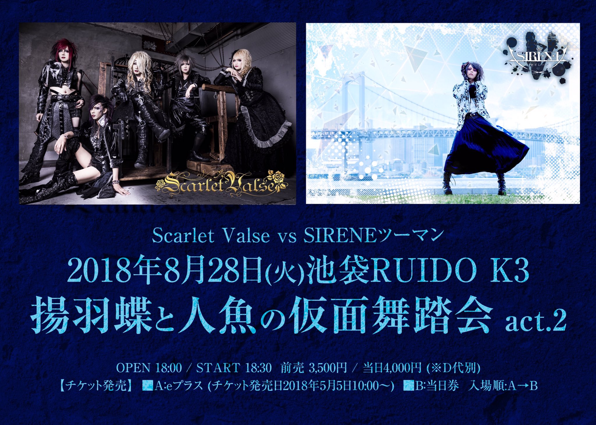 Martha Sirene セイレーン On Twitter 8月28日 火 池袋ruido K3 Sirene Vs Scarlet Valse 揚羽蝶と人魚の仮面舞踏会 Act 2 Open 18 00 Start 18 30 前売 3 500 当日 4 000 Drink代別 コラボ企画あり チケット a Eプラス チケット発売日2018