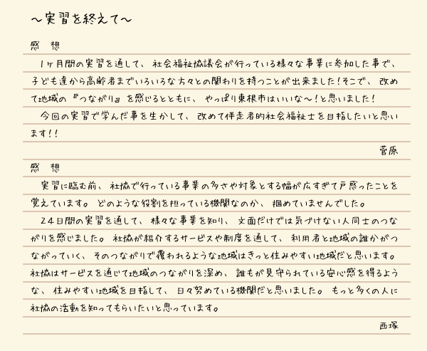 介護福祉士科 大好評 絆コメントリレー集