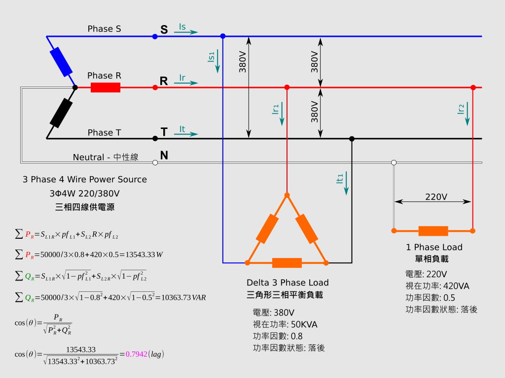三相單相混合負載電力計算