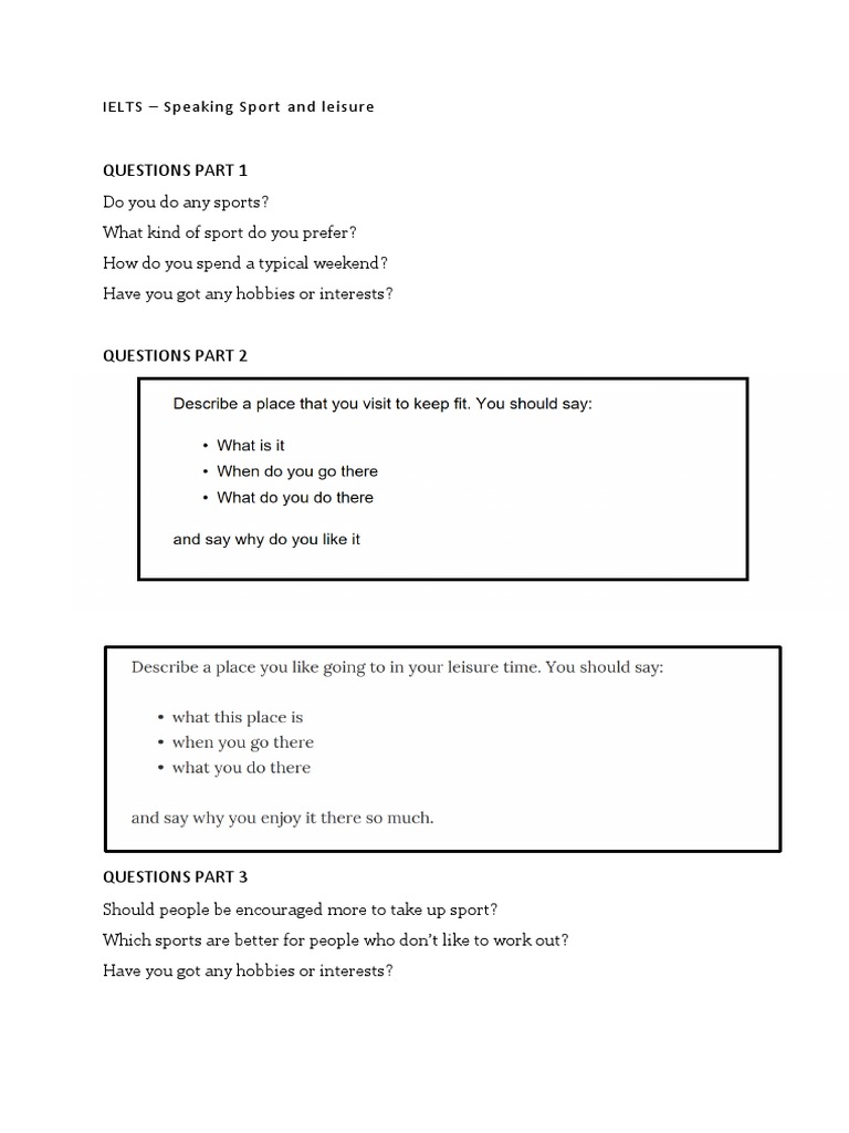 101 Ielts Speaking Part Two Topic Cards About Sports Hobbies And Free Time A Z Pdf Free Download